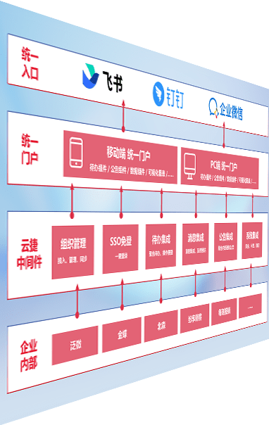 对协作平台提供支持服务,,支持企业应用与协作平台对接,,包含组织同步、、、消息集成、、、待办集成等。。。。支持目前主流的协作平台:钉钉、、、、企微和飞书。。